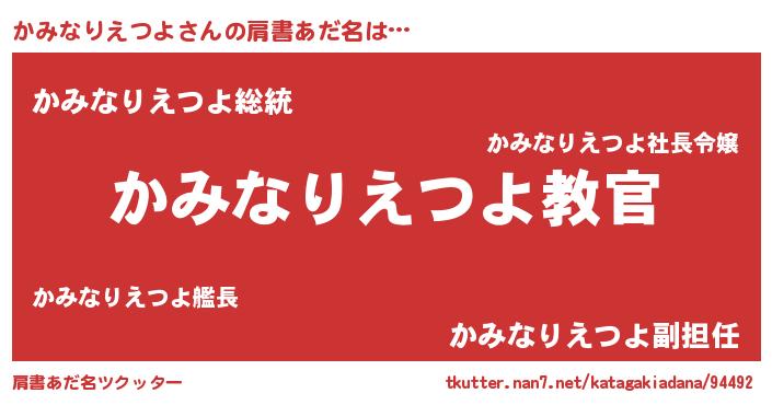 | 欧米人風あだ名 | 『ダレノガレかみなりえつよ』 |