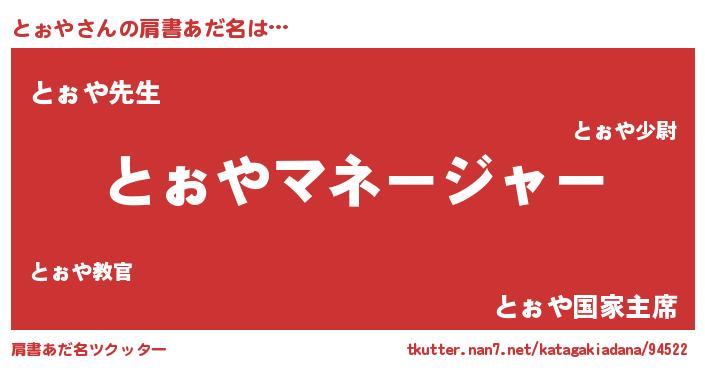 | ヒーロー風カッコイイあだ名 | 『ネオトォヤ』『ウルトラとぉやマン』 |