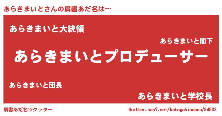 | 男性向けラノベタイトル風あだ名 | 『はたらくあらきまいとさま!』 |