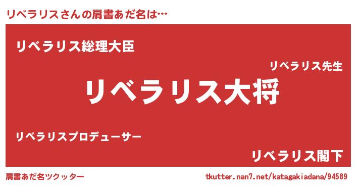 | 男性向けラノベタイトル風あだ名 | 『リベラリス~年齢イコール彼女いない歴の魔法使い~』 |