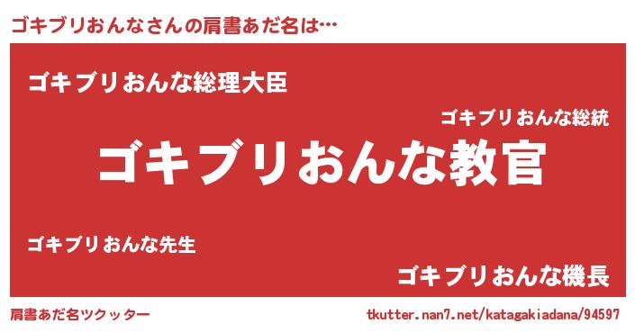 | 男性向けラノベタイトル風あだ名 | 『この素晴らしい世界にゴキブリおんなを!』 |