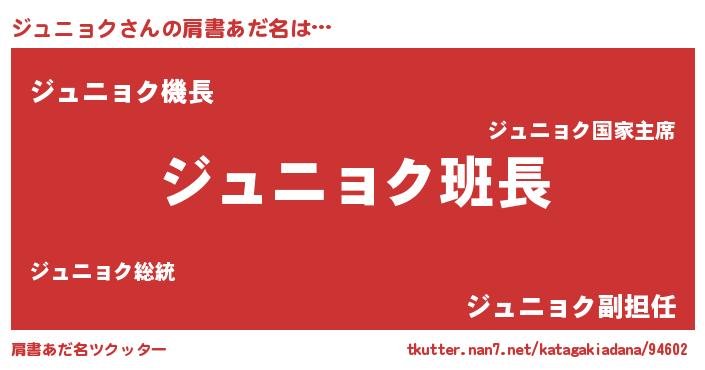 | 男性向けラノベタイトル風あだ名 | 『ジュニョクの嫁は女の子じゃないと思った?』 |