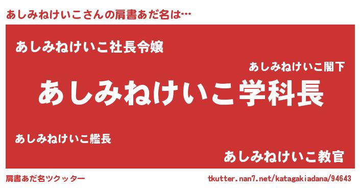 | ヘコむあだ名 | 『あしもー』『あしみねけいこ(苦笑)』 |