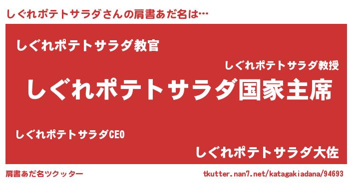 | 欧米人風あだ名 | 『しぐれポテトサラダクリステル』 |