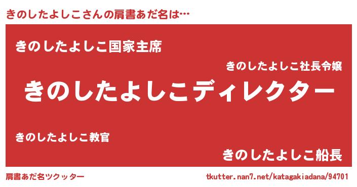 | 男性向けラノベタイトル風あだ名 | 『きのしたよしこに滅ぼされるだけの簡単なお仕事です』 |