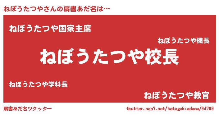 | 男性向けラノベタイトル風あだ名 | 『ねぼうたつやという概念が存在しない退屈な世界 』 |