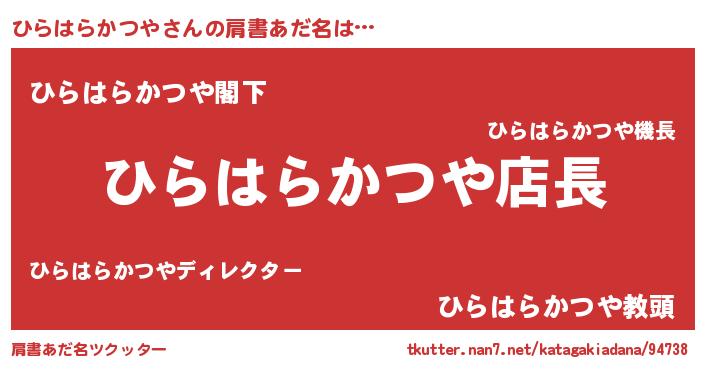 | ヒーロー風カッコイイあだ名 | 『スーパーヒラハラカツヤ』 |
