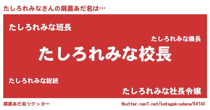 | ヒーロー風カッコイイあだ名 | 『ネオタシロレミナ』『暗黒騎士タシ』 |