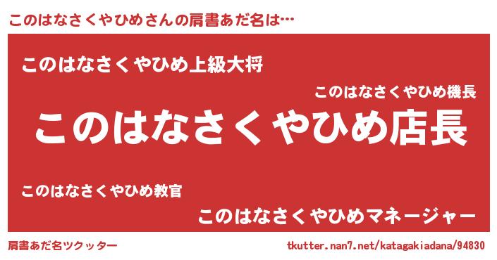 | ヒーロー風カッコイイあだ名 | 『スーパーコノハナサクヤヒメ』 |