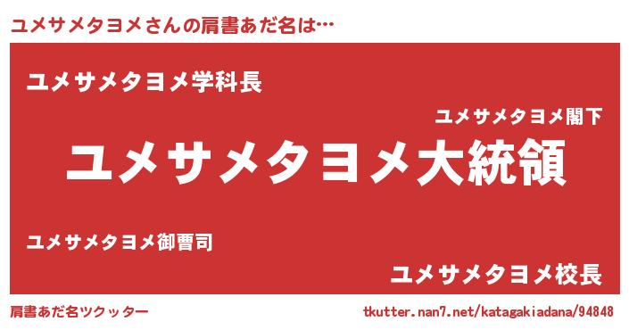 | 意味不明あだ名 | 『ユメサメタヨメフォーエバー』 |