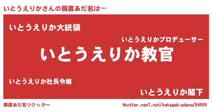 | 意味不明あだ名 | 『住所不定無職いとうえりか(62歳)』 |