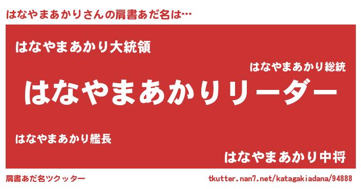 | ポケモン風あだ名 | 『ヒハナヤマアカリ』『ハナヤダネ』 |