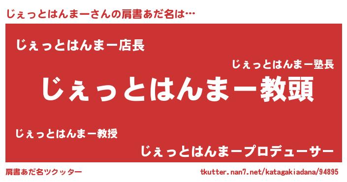 | 意味不明あだ名 | 『永久保存じぇっとはんまー』 |