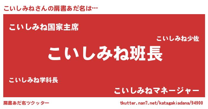 | 女子向けラノベタイトル風あだ名 | 『こいしみねは平凡を望む』 |