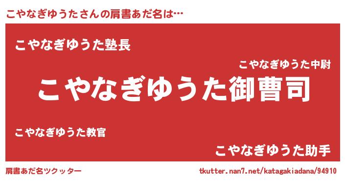 | 胡散臭い通販商品みたいなあだ名 | 『億万長者になれる霊験あらたかなお札…その名も「こやなぎゆうた」』 |