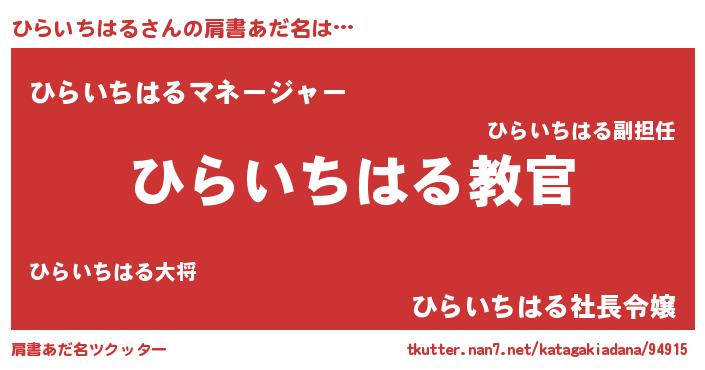 | ヒーロー風カッコイイあだ名 | 『仮面ヒラダー』『スーパーヒライチハル』 |