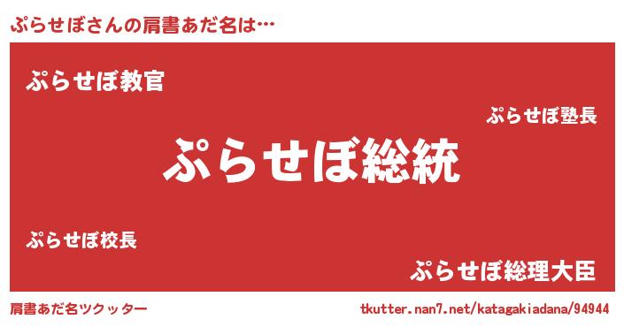 | 女子向けラノベタイトル風あだ名 | 『ぷらせぼストレイドッグス』 |