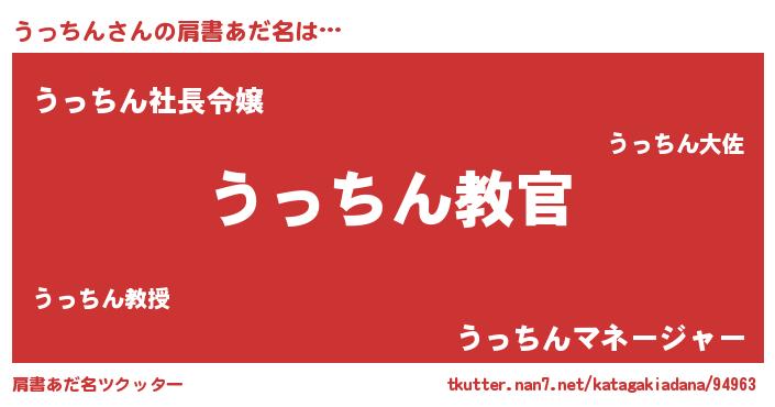 | 男性向けラノベタイトル風あだ名 | 『この素晴らしい世界にうっちんを!』 |