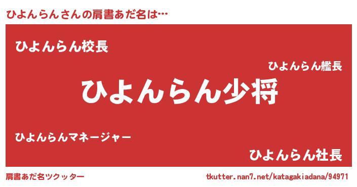 | 胡散臭い通販商品みたいなあだ名 | 『絶対に幸福をもたらす水素水…その名も「ひよんらん」』 |