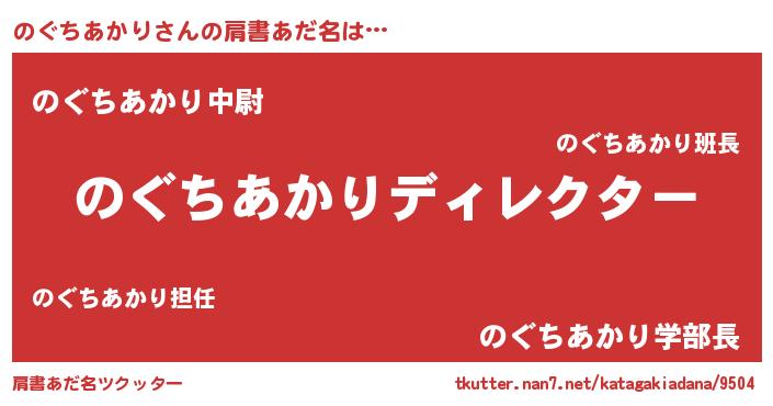 | 男性向けラノベタイトル風あだ名 | 『のぐちあかりに滅ぼされるだけの簡単なお仕事です』 |