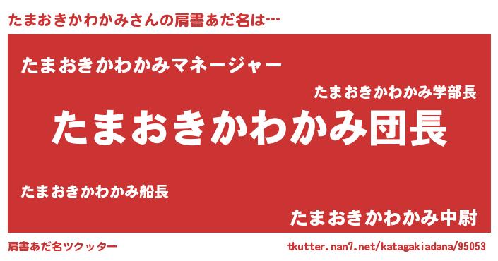 | 女子向けラノベタイトル風あだ名 | 『たまおきかわかみは平凡を望む』 |