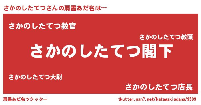 | 意味不明あだ名 | 『自称さかのしたてつ』 |