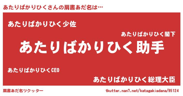 | 女子向けラノベタイトル風あだ名 | 『あたりばかりひく恋絵巻』 |