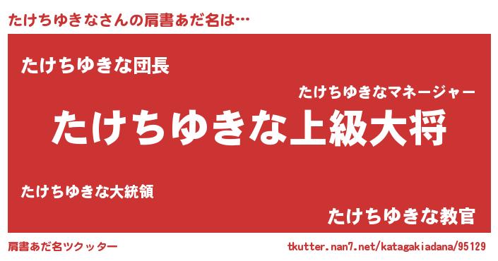 | ポケモン風あだ名 | 『タケキング』『ヒタケチユキナ』 |