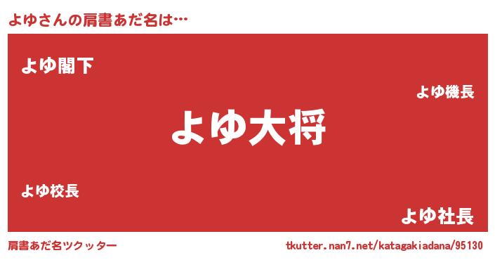 | 可愛いあだ名 | 『よゆぷりん』『よゆうちぇる』 |