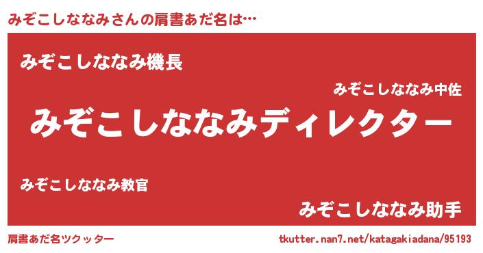 | 男性向けラノベタイトル風あだ名 | 『みぞこしななみに滅ぼされるだけの簡単なお仕事です』 |