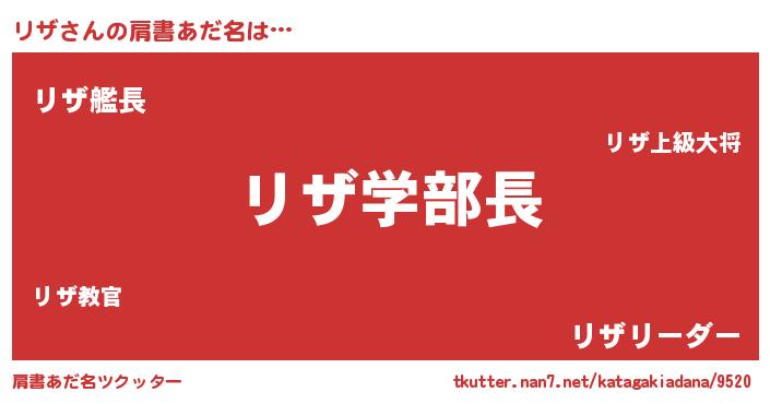 | 女子向けラノベタイトル風あだ名 | 『死神リザの再婚』『リザは平凡を望む』 |