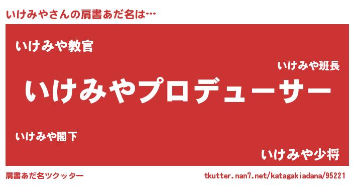 | 意味不明あだ名 | 『住所不定無職いけみや(95歳)』 |