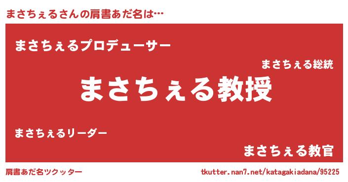 | 男性向けラノベタイトル風あだ名 | 『おまえをオタクにしてやるから、俺をまさちぇるにしてくれ! 』 |