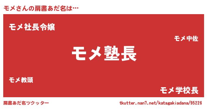 | 女子向けラノベタイトル風あだ名 | 『モメは平凡を望む』『死神モメの再婚』 |