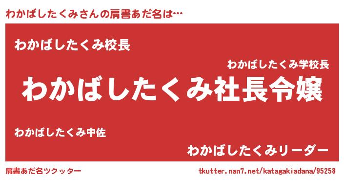 | ヘコむあだ名 | 『わかもー』『わかばしたくみ(笑)』 |