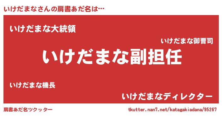 | ヘコむあだ名 | 『いけだまな(遠い目)』『なまこ酢』 |