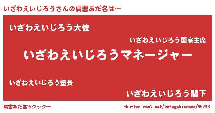 | 男性向けラノベタイトル風あだ名 | 『いざわえいじろうに滅ぼされるだけの簡単なお仕事です』 |