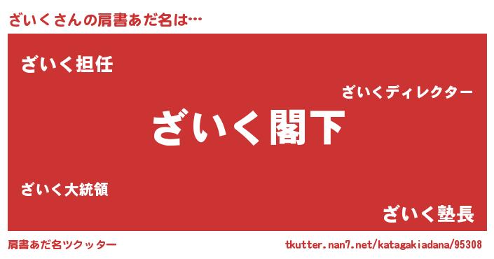 | 意味不明あだ名 | 『自称ざいく』『永久保存ざいく』 |
