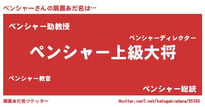 | 男性向けラノベタイトル風あだ名 | 『転生したらペンシャーだった件』 |