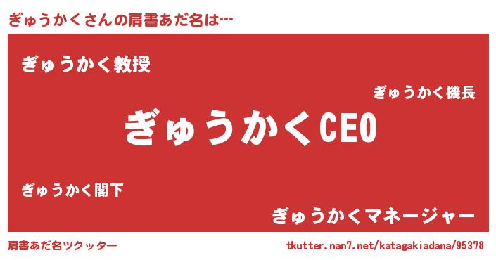 | 男性向けラノベタイトル風あだ名 | 『ぎゅうかくの憂鬱』『緋弾のギュウカク』 |