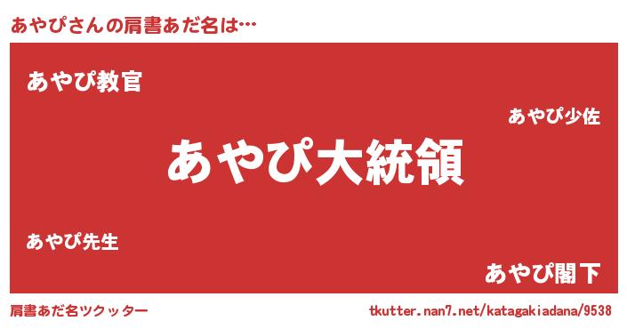 | ヒーロー風カッコイイあだ名 | 『ウルトラあやぴマン』『仮面アヤダー』 |