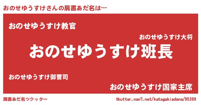 | 欧米人風あだ名 | 『ウサインおのせゆうすけ』 |