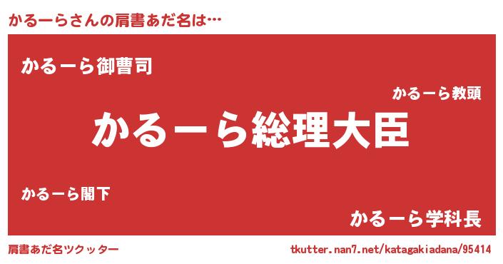 | ヒーロー風カッコイイあだ名 | 『ウルトラかるーらマン』『ネオカルーラ』 |