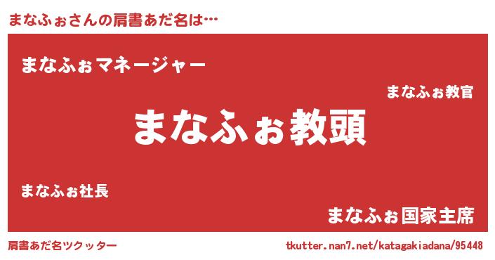 | 男性向けラノベタイトル風あだ名 | 『まなふぉという概念が存在しない退屈な世界 』 |