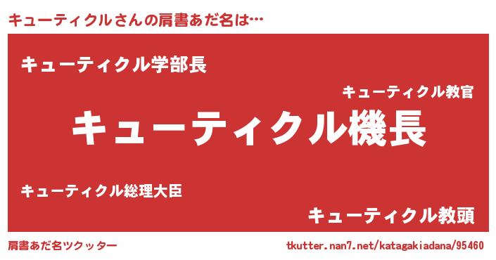 | 女子向けラノベタイトル風あだ名 | 『シンデレラキューティクル家の靴箱館』 |