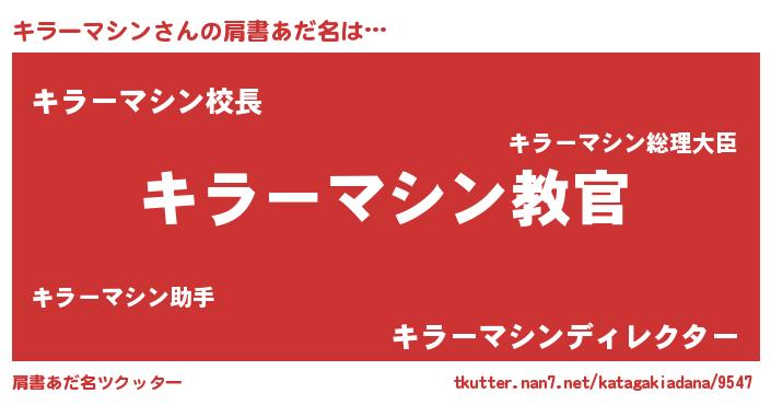 | ヒーロー風カッコイイあだ名 | 『仮面キラダー』『ネオキラーマシン』 |