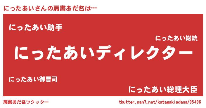 | 男性向けラノベタイトル風あだ名 | 『にったあいに滅ぼされるだけの簡単なお仕事です』 |