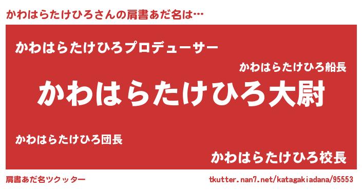 | ヘコむあだ名 | 『かわはらたけひろ(爆)』『かわっちょ』 |