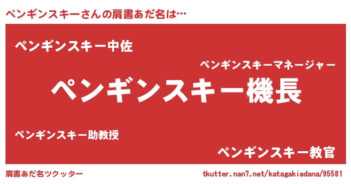 | 男性向けラノベタイトル風あだ名 | 『緋弾のペンギンスキー』 |
