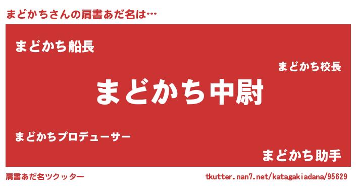| 男性向けラノベタイトル風あだ名 | 『まどかち~年齢イコール彼女いない歴の魔法使い~』 |